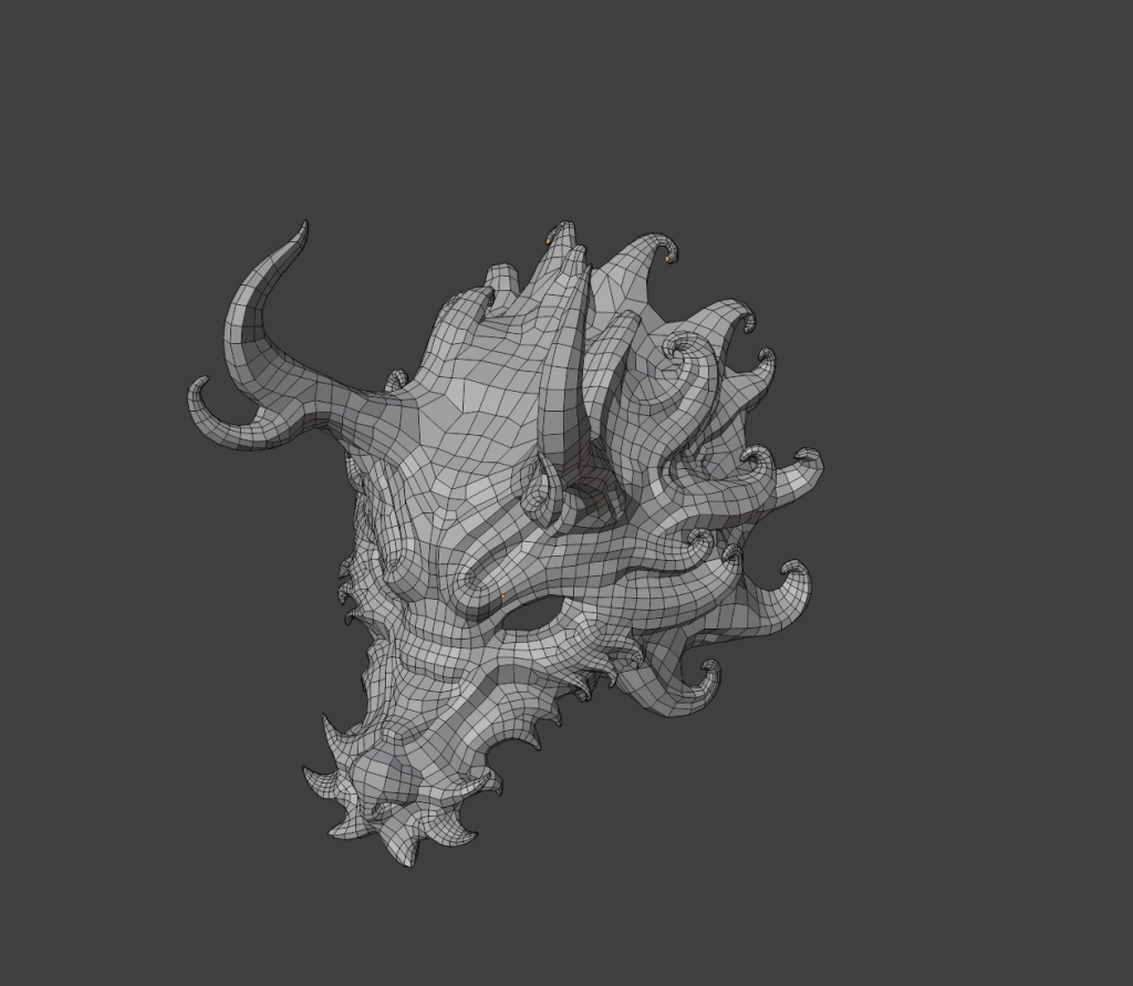 After that I mirrored it in zbrush, zremesher, adjusted it to look like this and sculpted the top beast head.